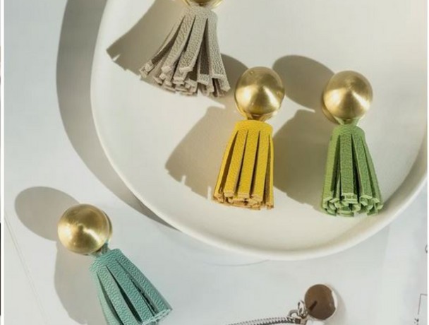 Ручка из латуни под золото голубая