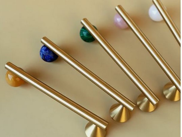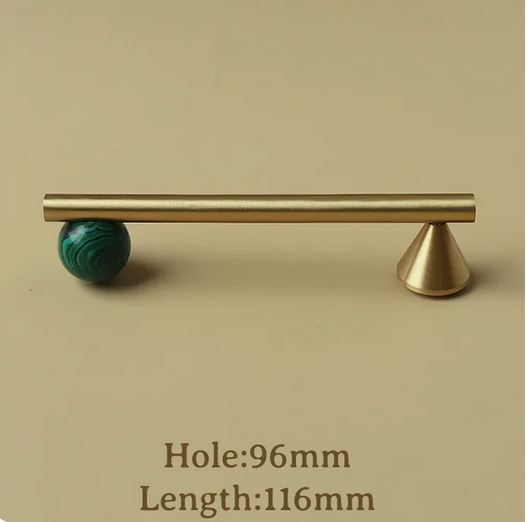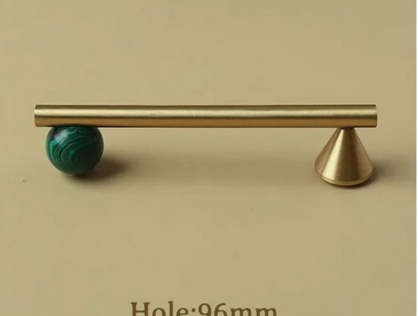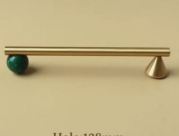 Ручка из латуни под золото с зеленым натуральным камнем