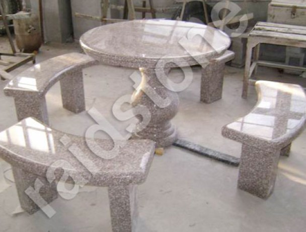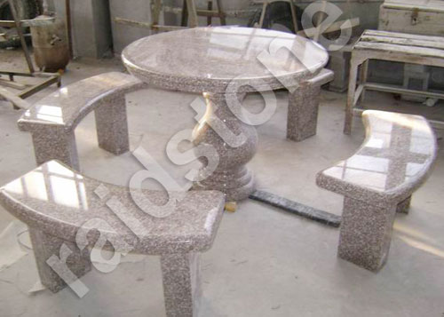 В комплект мебели из камня входит: столик круглый и 3 скамьи.