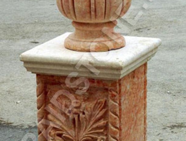 Вазон изготовлен из цельного глыба мрамора, подставка изготовлен из пластов. Часть изделия- мрамор Кристалл вайт.