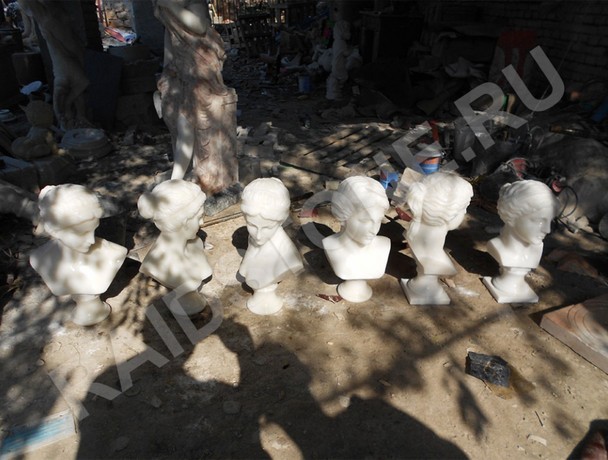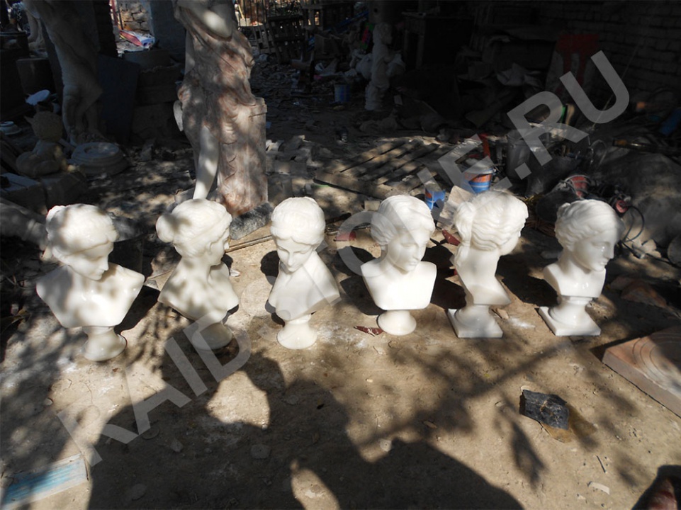 Бюсты из белого мрамора. После установки в греческом зале дома-музея Асеевых.