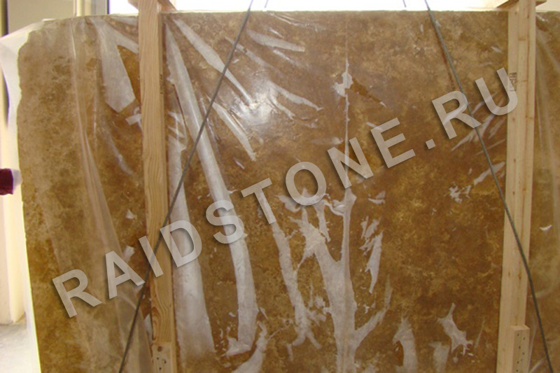 Травертин Голд полированный (Gold Polished) 3cм легче по весу гранита, а по фактуре похож на мрамор, но стоит дешевле. Прочность и устойчивость камня к внешним воздействиям зависит от его месторождения: минералы из стоячих водоемов более плотные, чем из проточных рек и водопадов, последние пористые и относительно хрупкие.