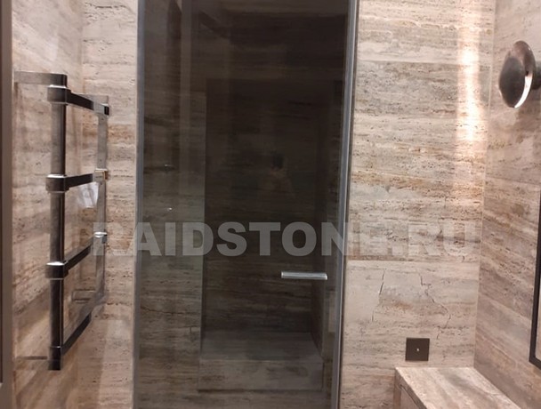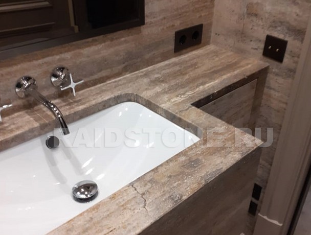 Сферы применения травертина: столешницы, стены, напольные покрытия. Камнем отделывают храмы, станции метрополитена, ванные комнаты. Минерал теплых оттенков подходит для обустройства жилых комнат, он придает помещениям уютный вид.