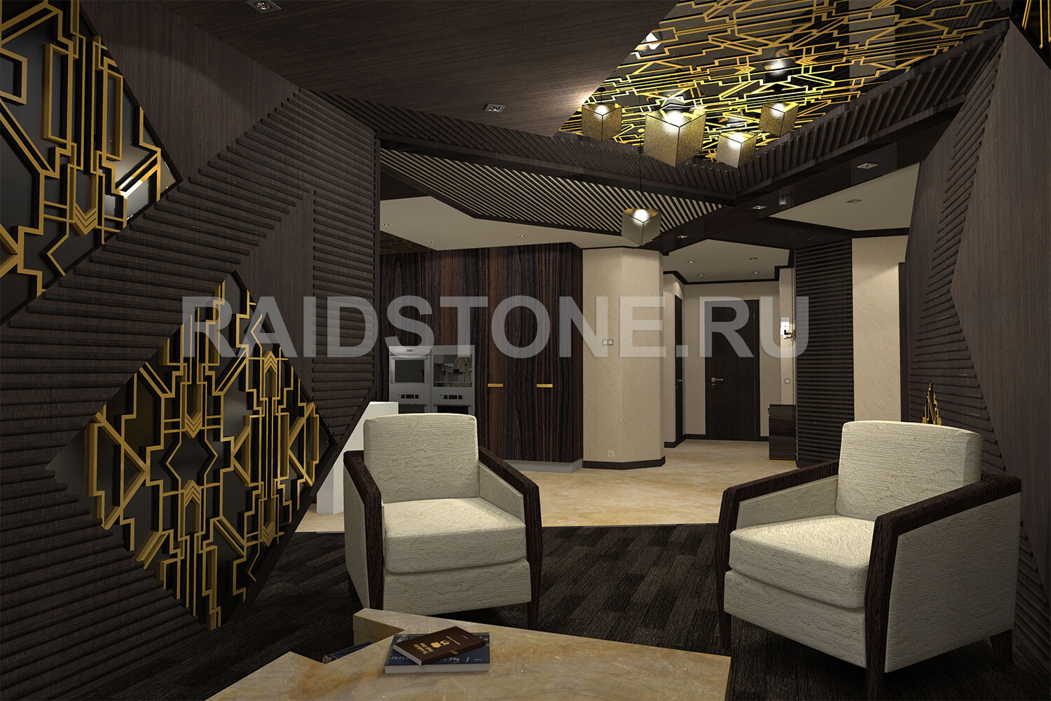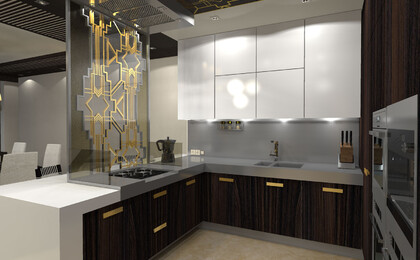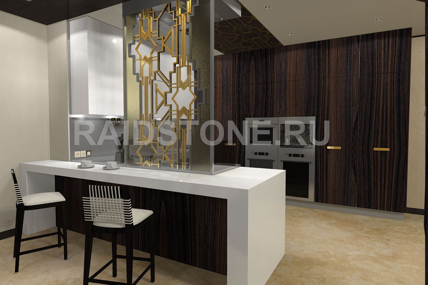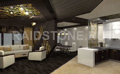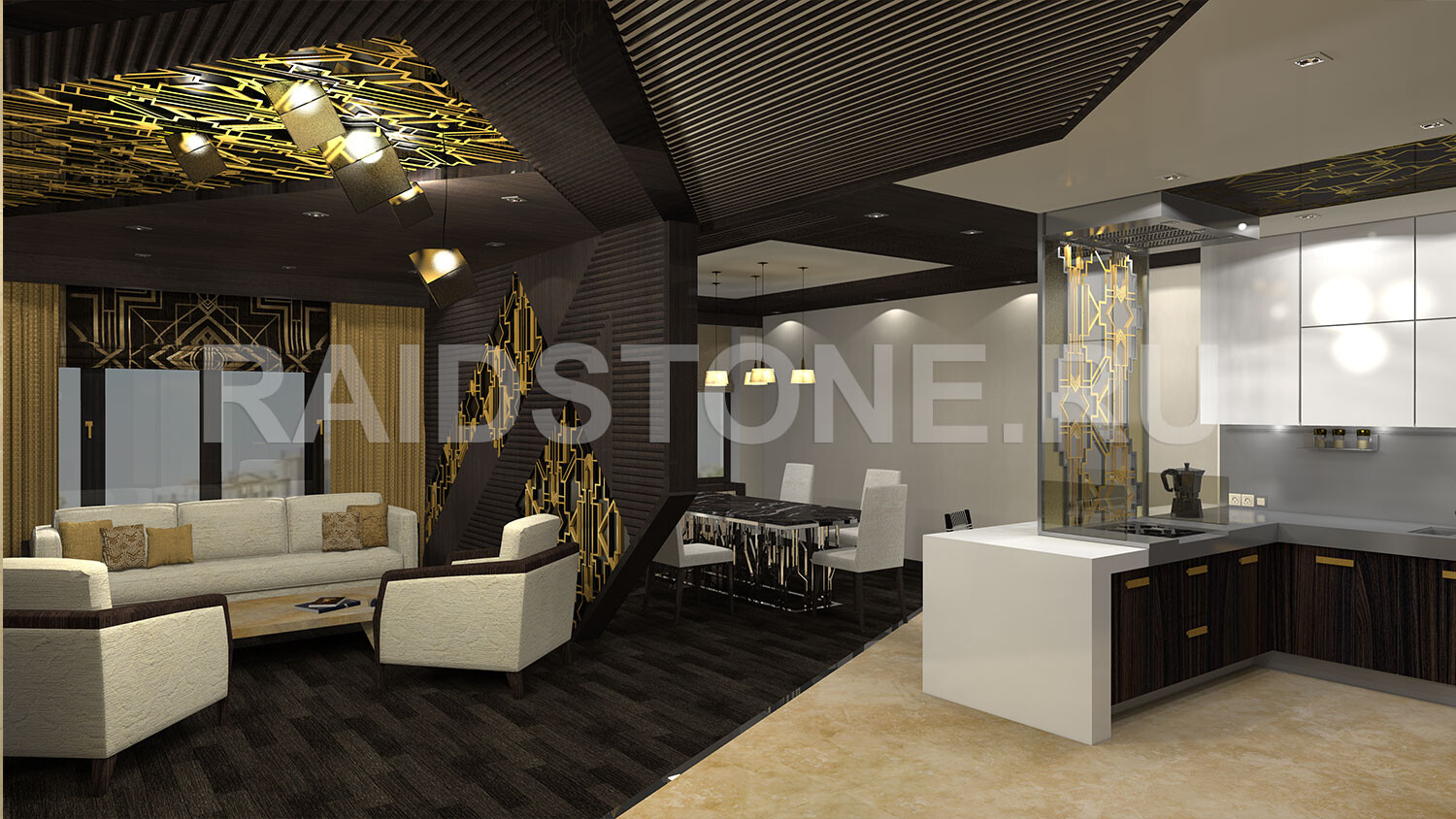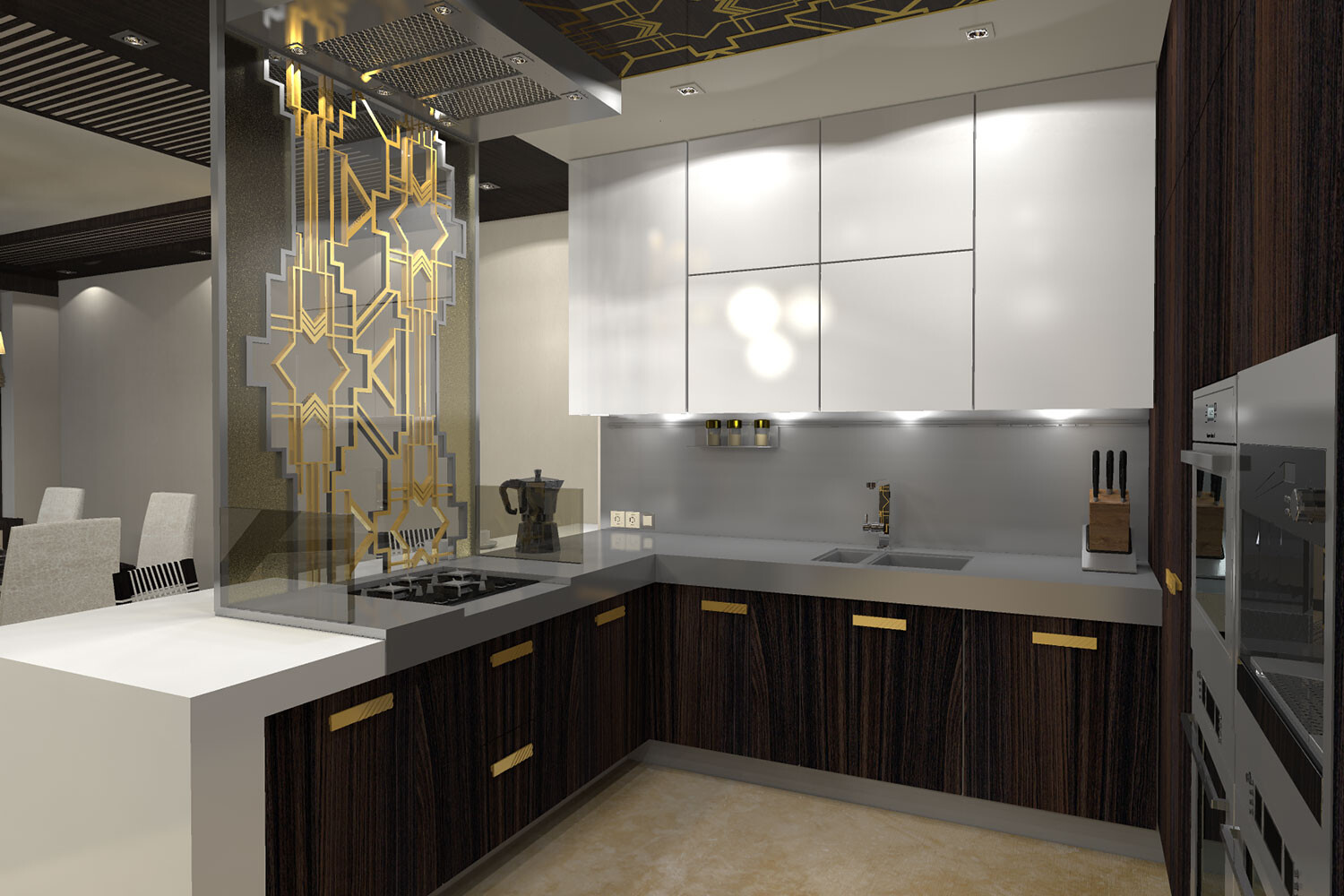 Дизайн проект интерьера квартиры с элементами ар-деко (гостинная, кабинет, кухня)