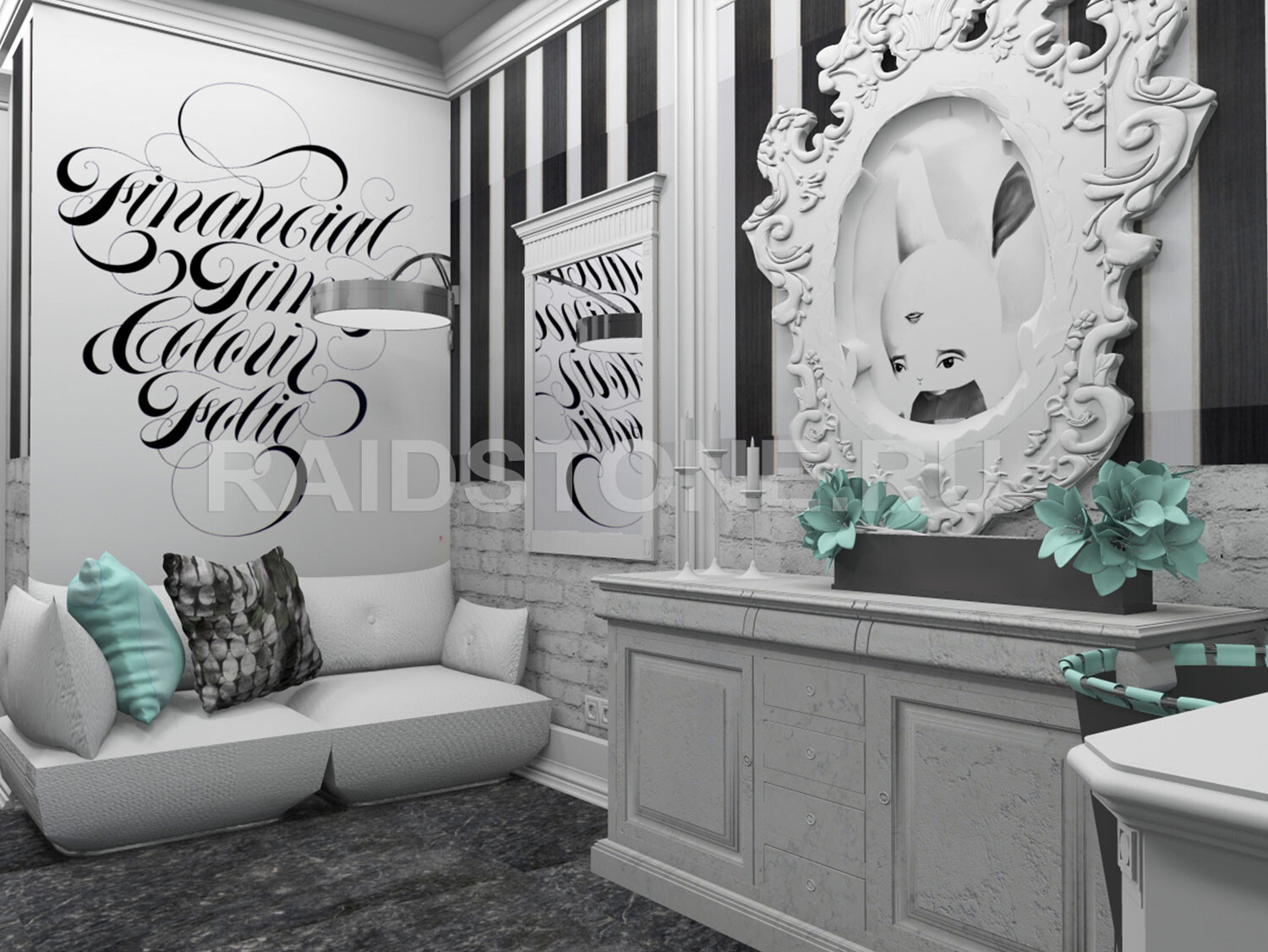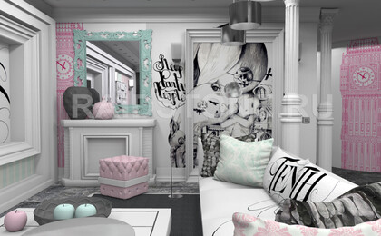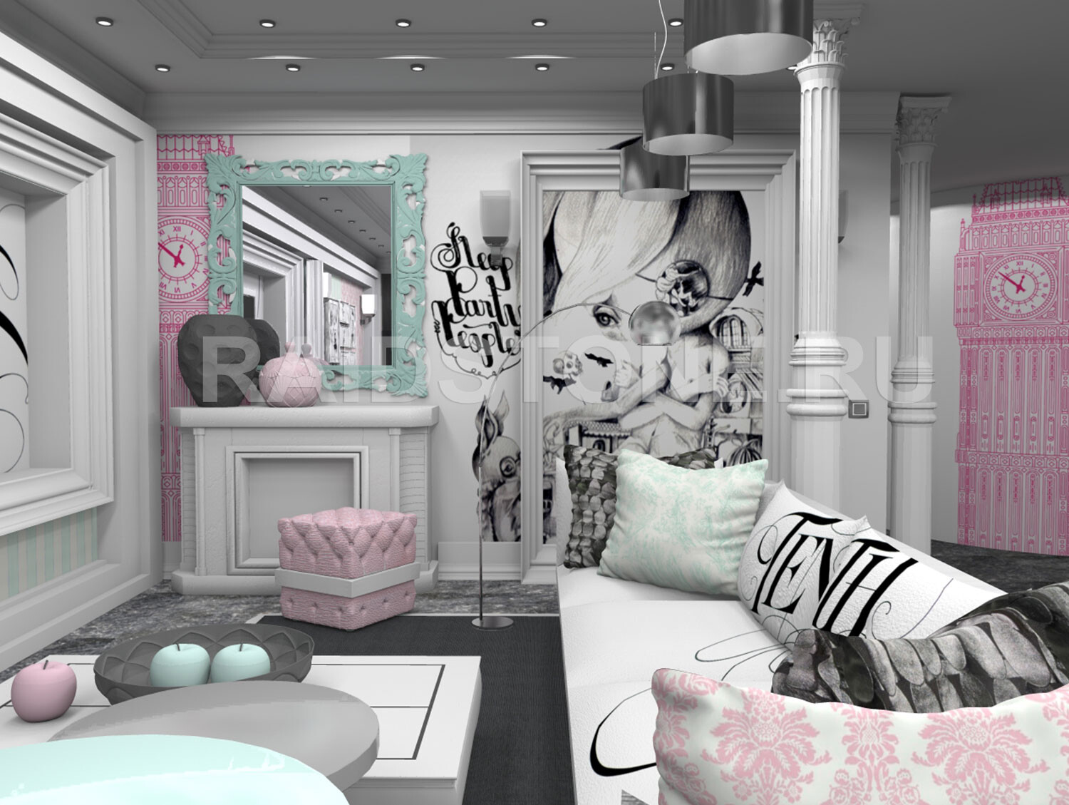 Дизайн проект интерьера квартиры в стиле Романтизм (гостинная)