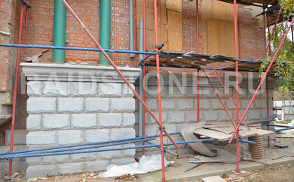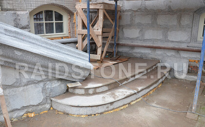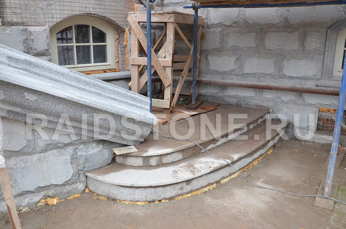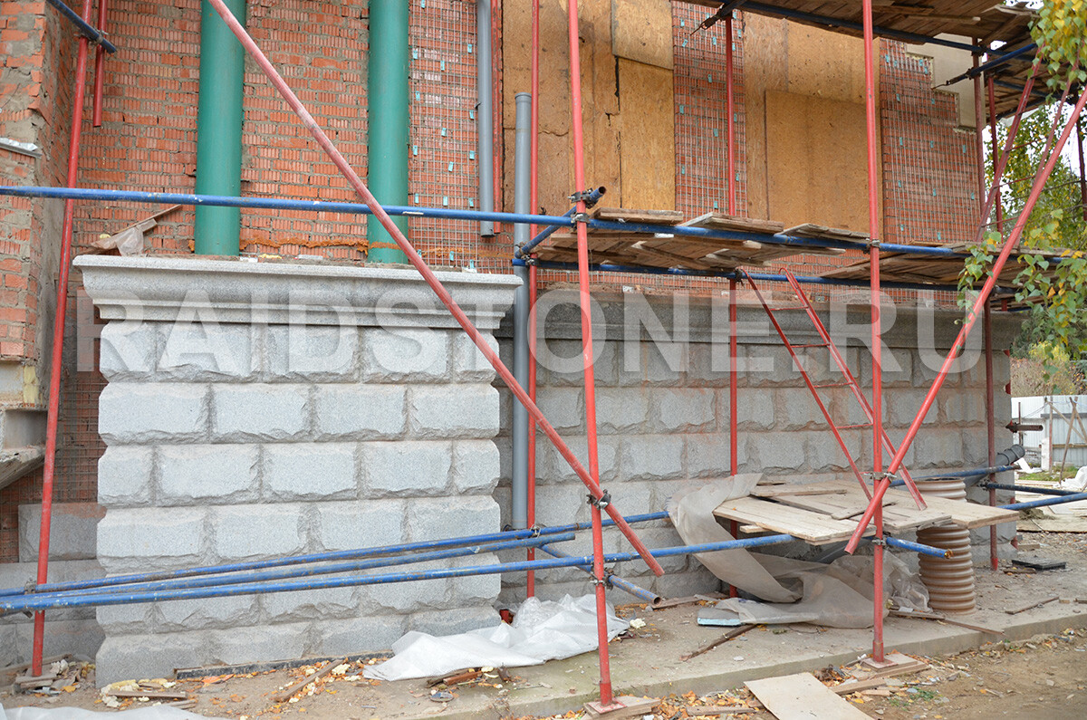 Облицовка цоколя "рваным" камнем (блоки гранита G603).