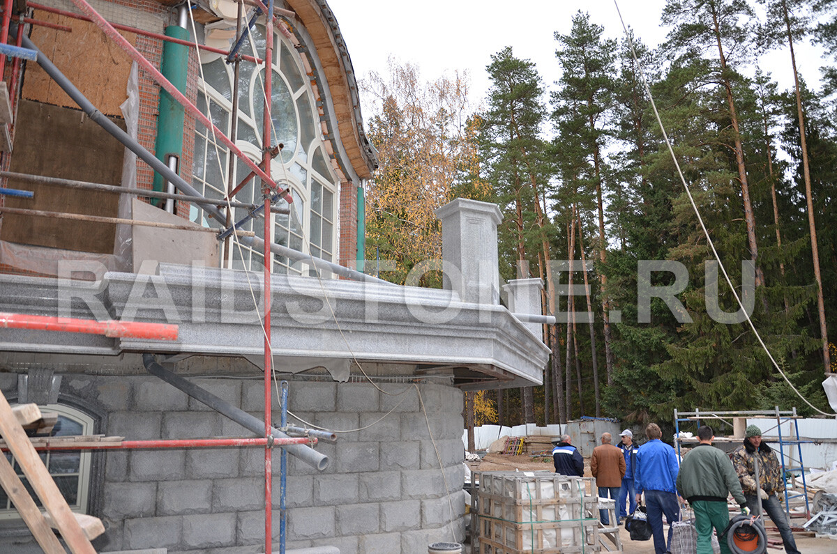 Облицовка фасада здания частного оздоровительного центра "Плеского-2" натуральным гранитом.