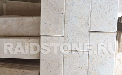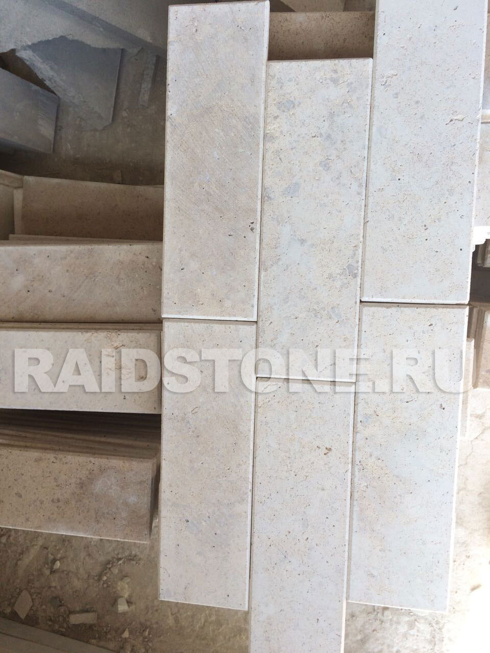 Монтаж плит травертина с матовой поверхностью на фасад.