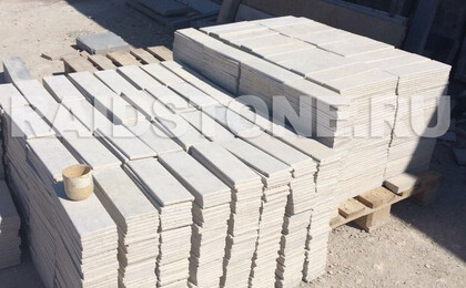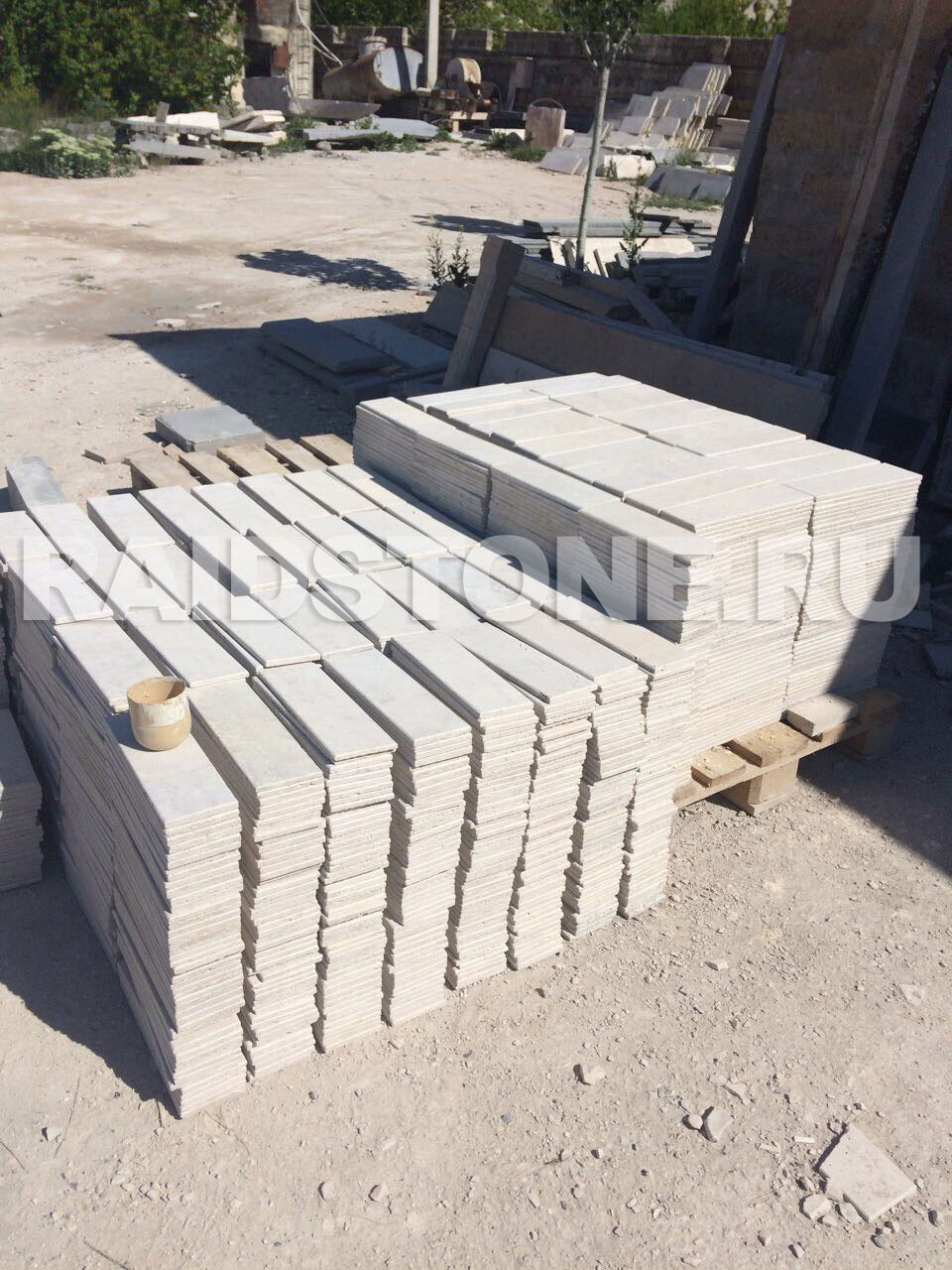 Материал облицовки фасада, - плита травертина 150х300х15 мм.