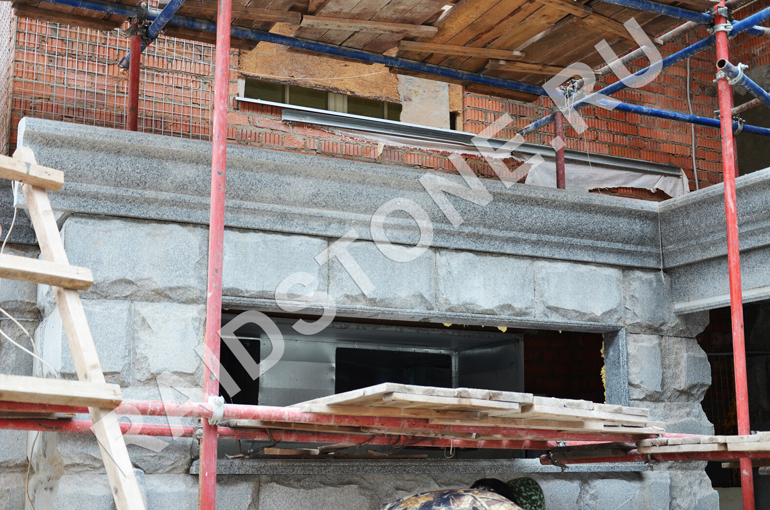Облицовка экстерьера здания гранитом.