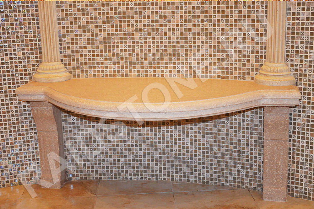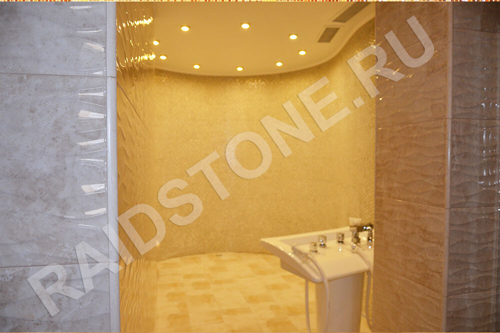 Материал пола: плитка из травертина Голд, Травертин Ноче антик и Травертино Джалло .