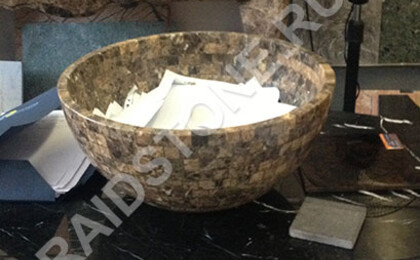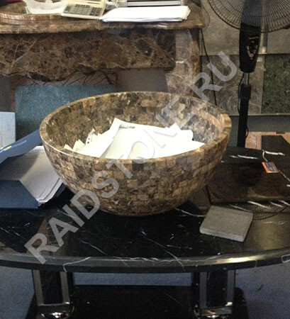 На 2-й фотографии та же курна из мрамора Имперадор Дарк, сделанная из кубиков мрамора, ручной сборки. На фото курна в офисе как образец.
