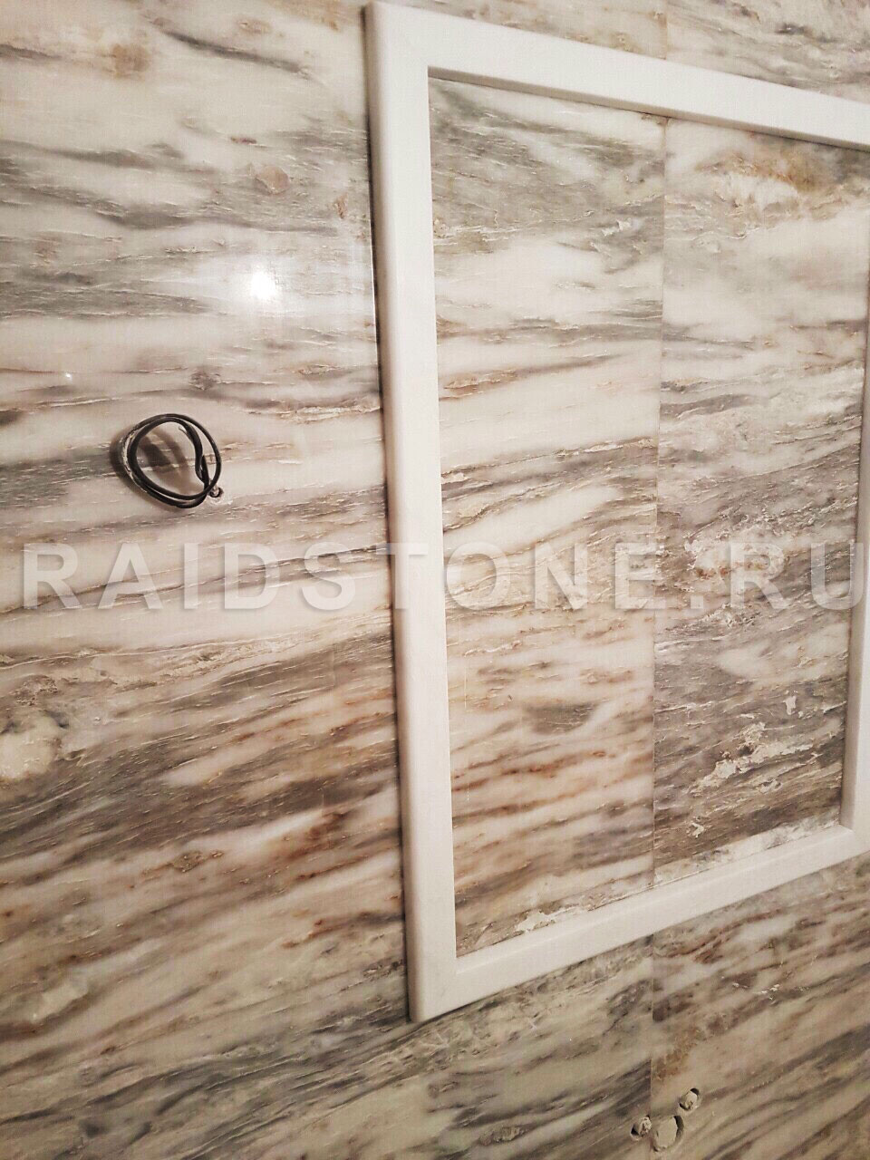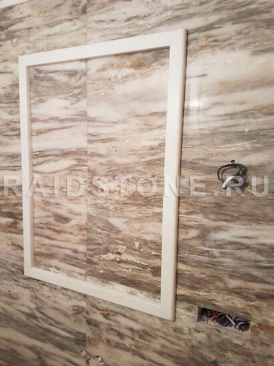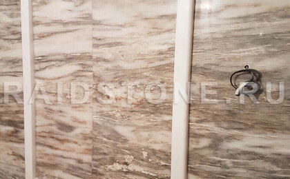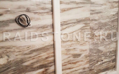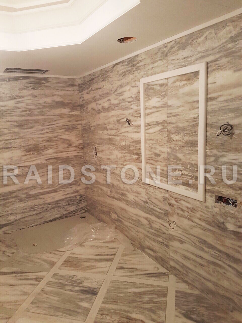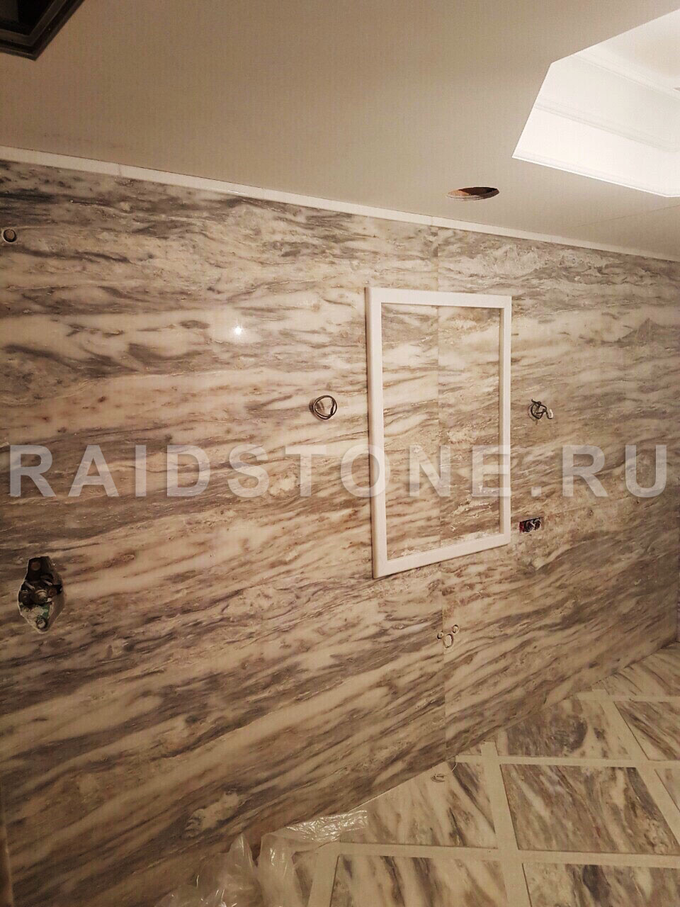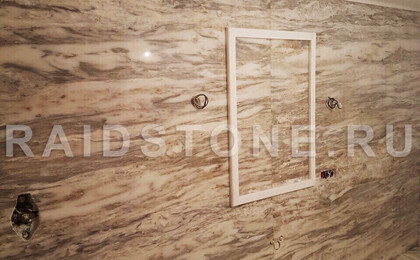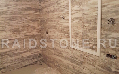 Облицовка стен санузла слебами мрамора Лучидо луна (?uchido Luna), Бразилия.