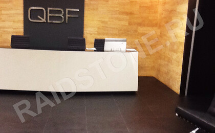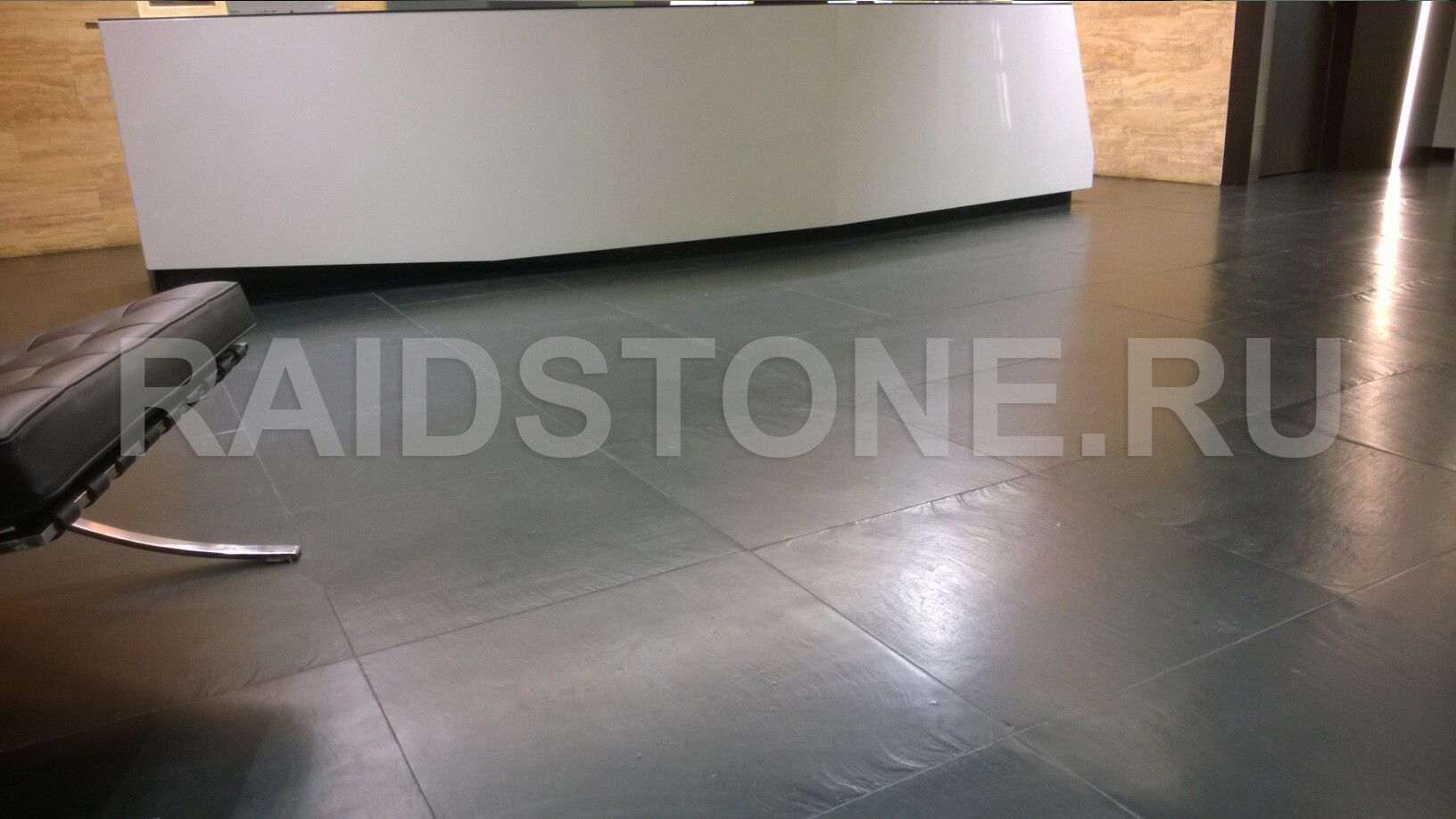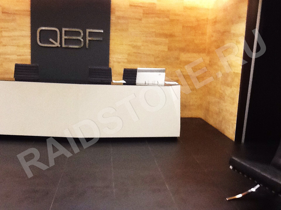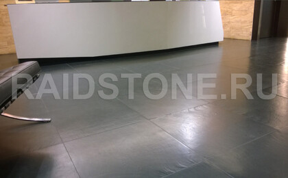 Облицовка пола офиса сланцевыми плитами.
