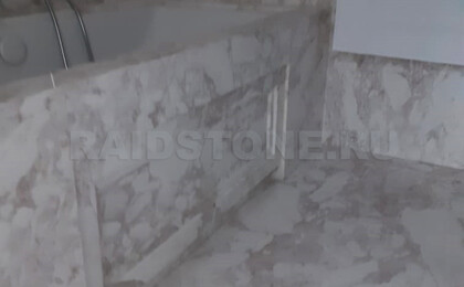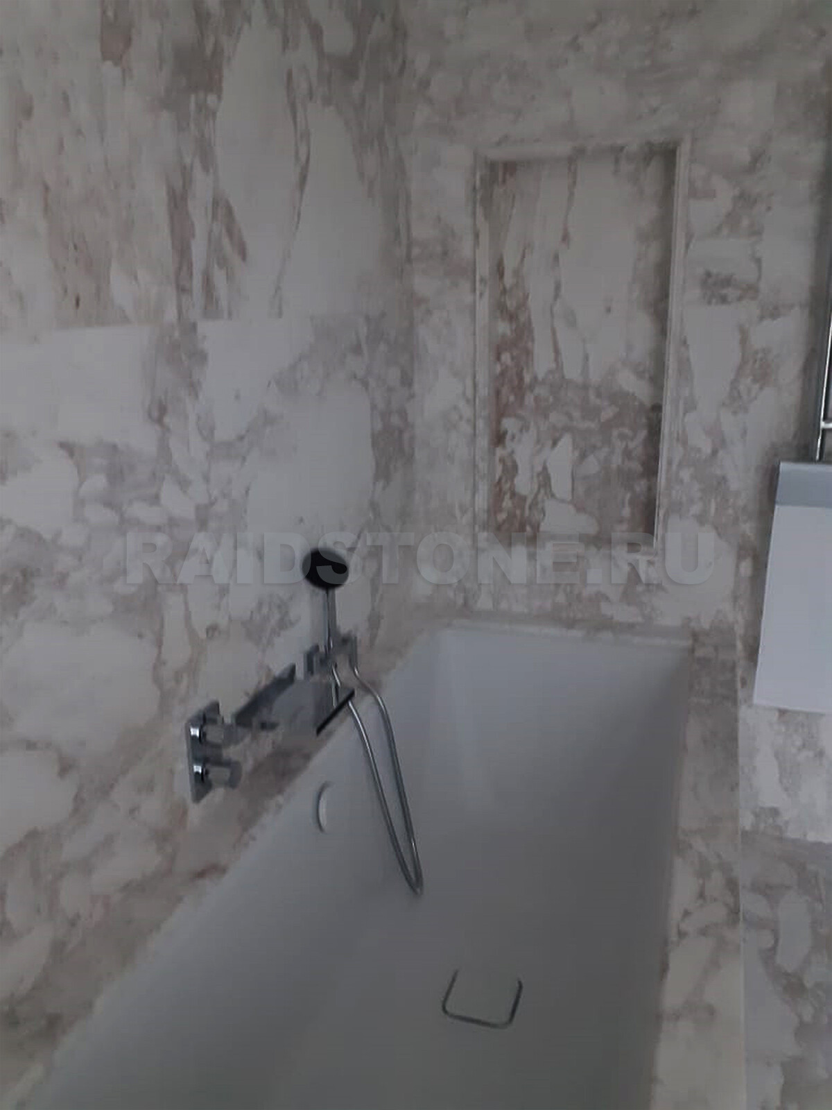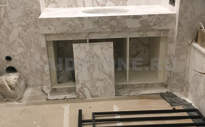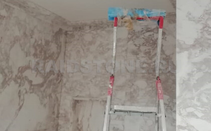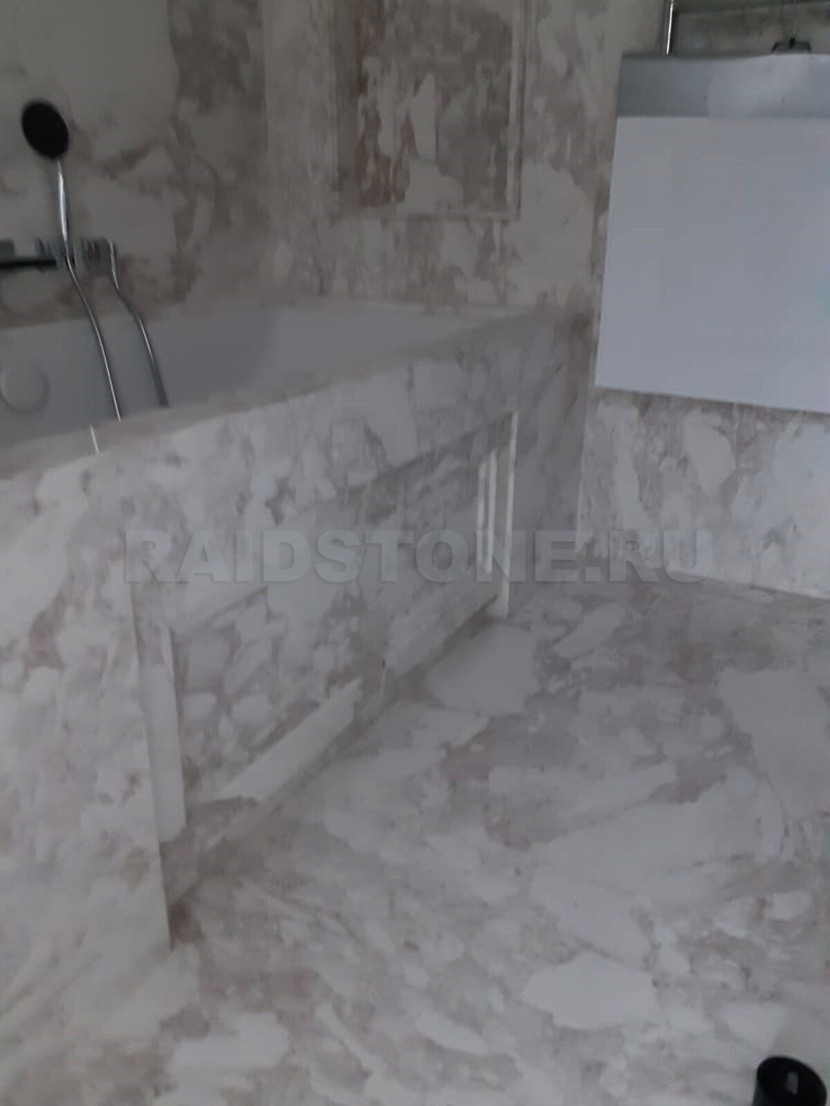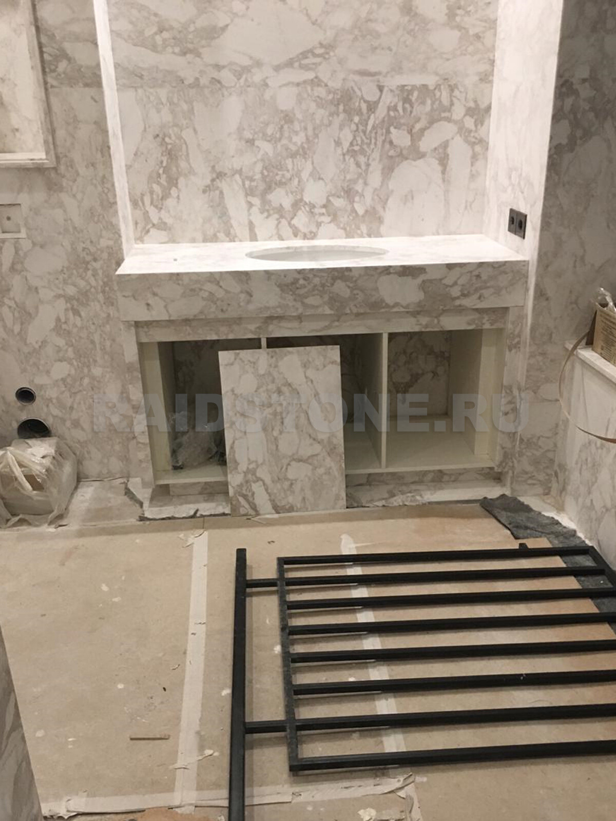 Облицовка стен, пола, мебели ванной комнаты мрамором (в процессе изготовления изделий, в процессе монтажа и после окончания работ).