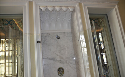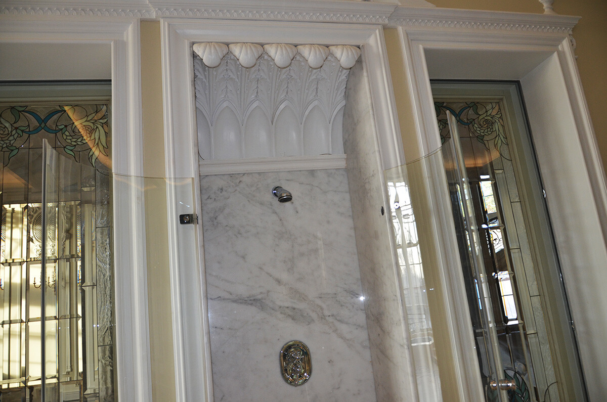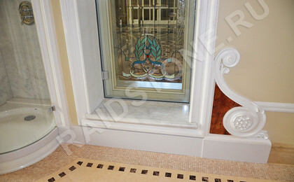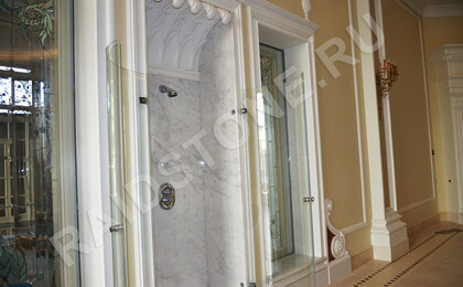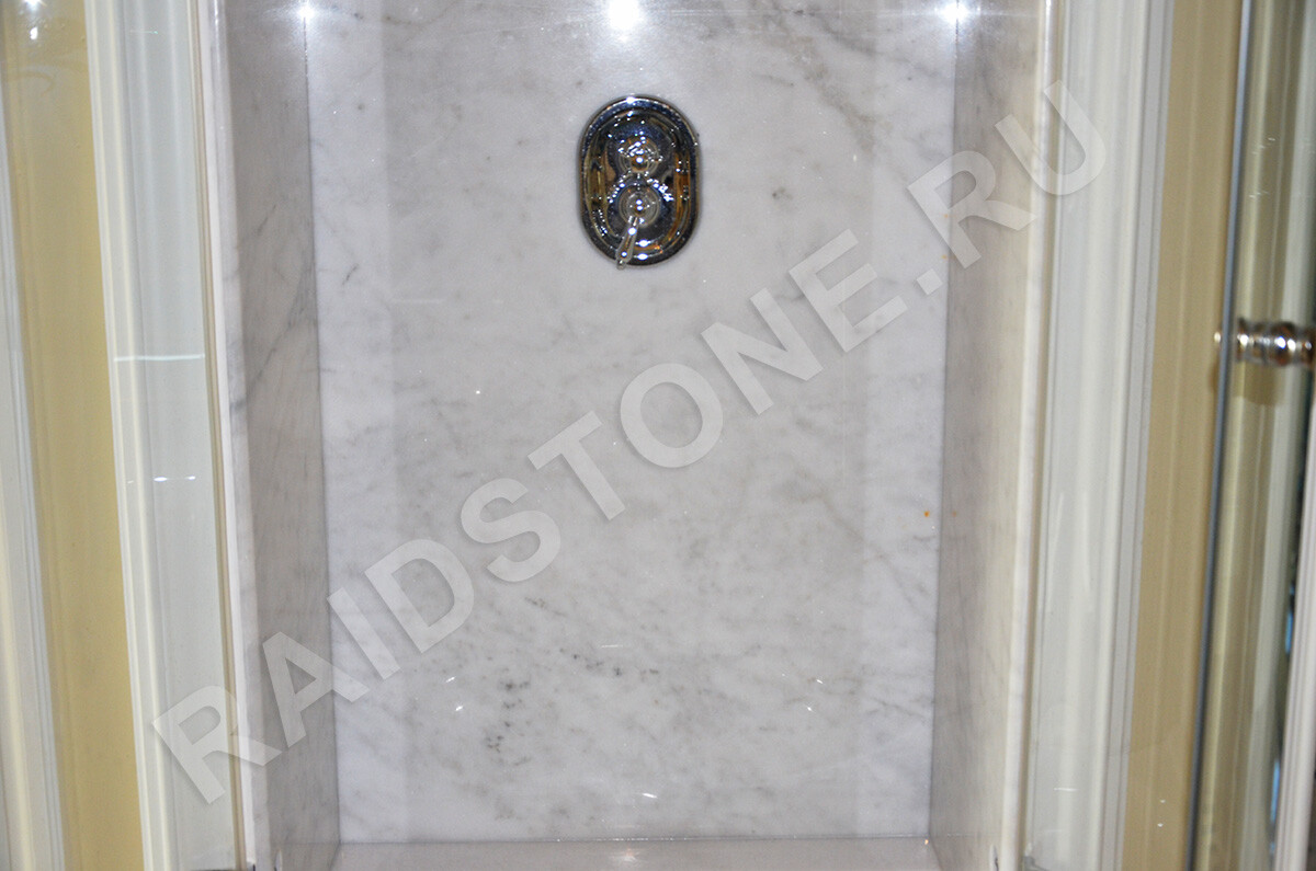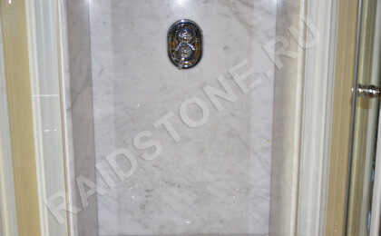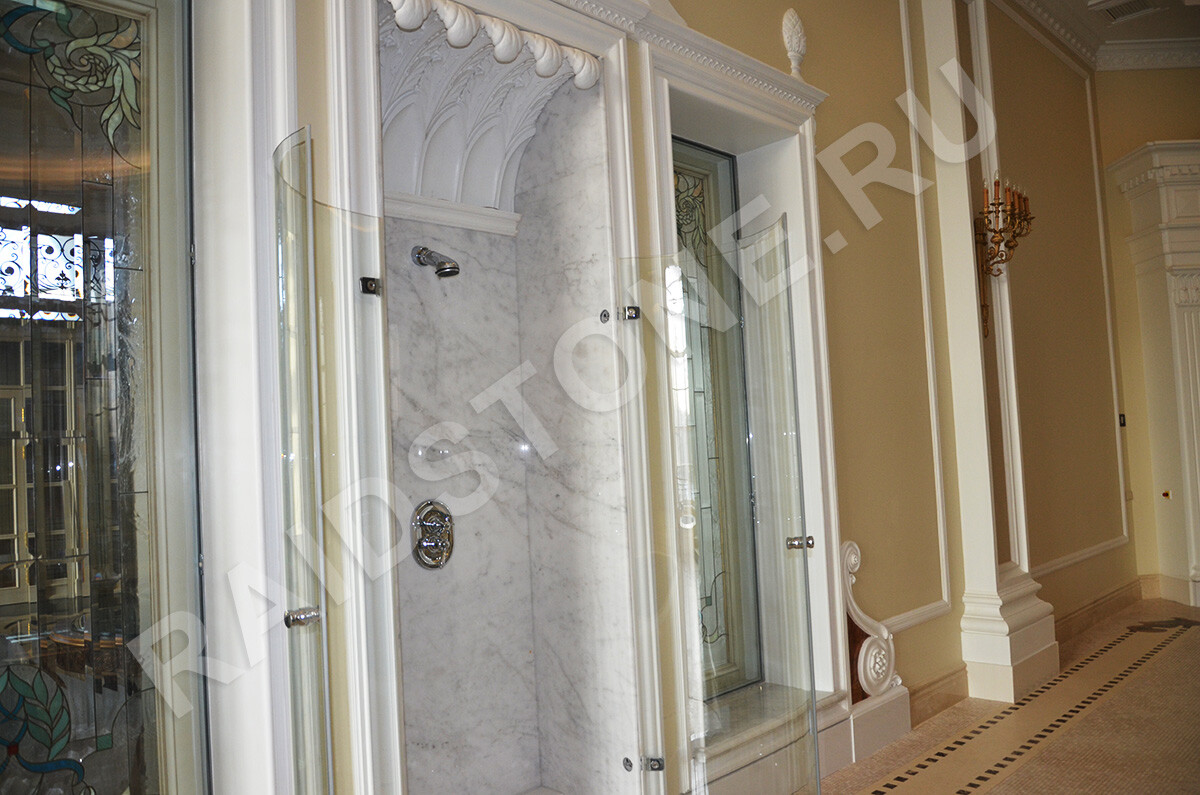 Материал облицовки стен: мрамор Бьянко Каррара (Bianco Сarrara), Италия.