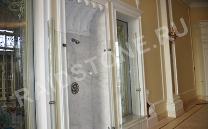 Материал облицовки стен: мрамор Бьянко Каррара (Bianco Сarrara), Италия.
